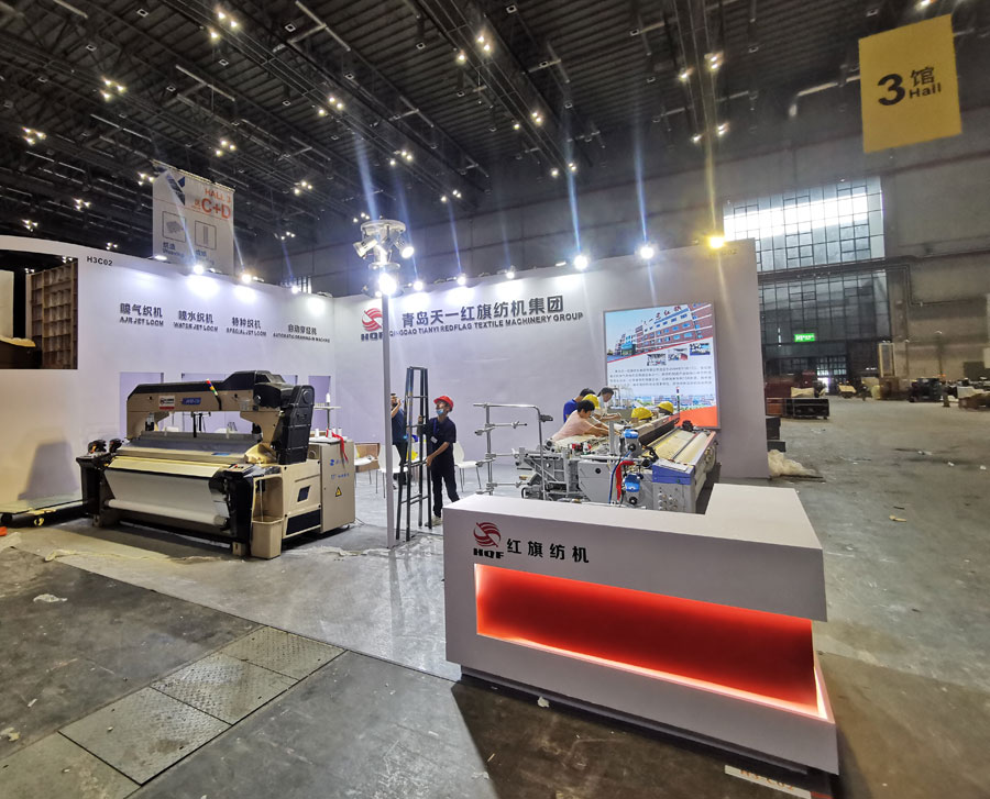 天一紅旗在2020紡機(jī)聯(lián)合展上展出了JA92-400高速寬幅噴氣織機(jī)和JW82-230高速噴水織機(jī)。
