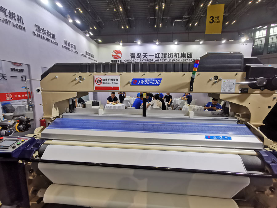 青島天一紅旗紡機(jī)集團(tuán)有限公司營(yíng)銷部經(jīng)理李德勝說(shuō):“高效節(jié)能、智能實(shí)用是本次參展樣機(jī)的主題。幾天來(lái),不少客商都對(duì)天一紅旗的噴氣織機(jī)和噴水織機(jī)表達(dá)了購(gòu)買意向。”
